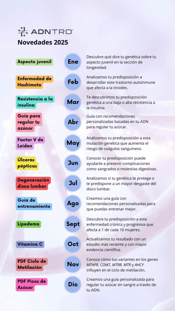 En ADNTRO, cerramos 2025 con la satisfacción de un año lleno de avances y descubrimientos. Hemos evolucionado contigo, creando informes más completos y funcionalidades que acercan aún más el mundo de tu ADN a tu día a día.